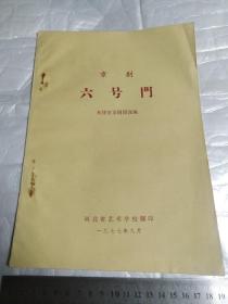 京剧 六号门【河北艺校手刻油印本,孤本,原书不卖,只卖复印本】