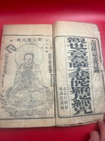 【大悲心陀罗尼经咒】稀见的民国十五年重庆新记启渝公司焚香茹斋石印本。是书白纸精印,书内有各种菩萨绘像几十幅,线装一厚本全。另外书中还夹带了一张民国时期的老照片。在此特价出售原本,具体品相见描述!!