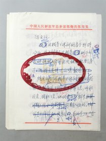 王育华(少将、原总参炮兵部部长、中国军谊诗书画院副院长)、陈连第(将军、原总参炮兵部政委)信札 一通2页 及 印刷信札 1页 附资料1页 共4页『坐拥百城LYJ20240219A21』