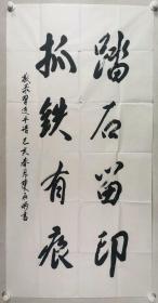 少将军衔、总后勤部基建营房部原副部长、中国将军书画研究院副院长 陈-在-炳 己亥年(2019)书法《踏石留印,抓铁有痕》一幅(纸本软片,画心约8.9平尺)HXTX280728