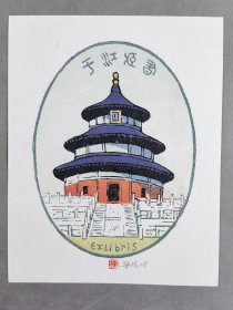著名版画家、曾任中国藏书票研究会会长,中央美术学院版画系教授 梁栋 1986年套色木刻《林默涵藏书》藏书票一张,出版于《书魂-梁栋 鹏程藏书票作品选》