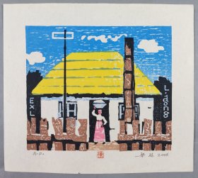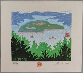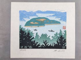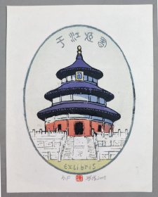 著名版画家、曾任中国藏书票研究会会长、中央美术学院版画系教授 梁栋 套色木刻《梁栋珍藏》藏书票一张(出版于《书魂-梁栋 鹏程藏书票作品选》P5) HXTX336100