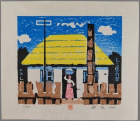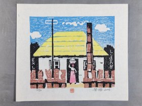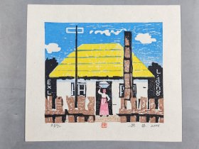 著名版画家、曾任中国藏书票研究会会长,中央美术学院版画系教授 梁栋 1990年套色木刻《古元藏书》藏书票一张,出版于《书魂-梁栋 鹏程藏书票作品选》