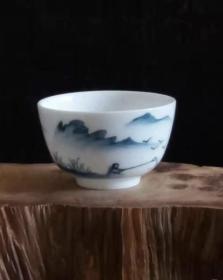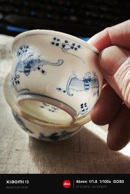 青花瓷手绘品茗杯,闻香杯,主人杯,容量约60ml,手感温润,器型端正,釉下彩无损无裂,如图实拍,图一二为打灯效果。底2.7,口6.5,高5厘米。看清拍,易碎物品,不退!底款:玩玉。识者来。
