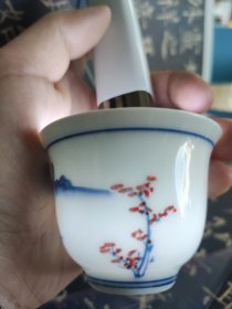 【雅宇轩*旧藏】放漏 纯手工彩绘釉下彩主人瓷杯 … 八九十年代纯手绘山水人物茶杯酒杯一个,彩柏款老货旧藏文玩艺术收藏,薄胎通透,画工精湛。高约34.5mm,口径约55mm,容量约40ml