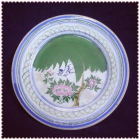 漂亮的民国釉下三彩花鸟纹瓷盘