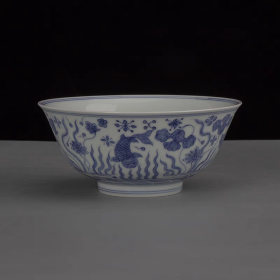 明手绘青花釉下彩薄胎鱼草纹碗