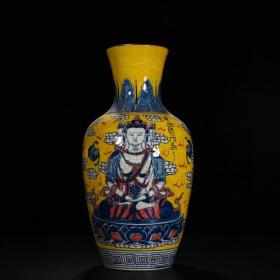 清乾隆釉下五彩唐卡佛像瓶41×17