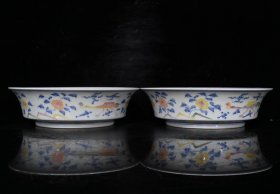 大明成化五彩釉下彩双凤盘(6.3×22cm)