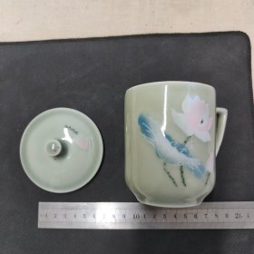 青釉下堆白手绘办公杯子一个,7.5