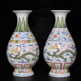 大明成化五彩釉下彩龙凤瓶(22.5×11.5cm)