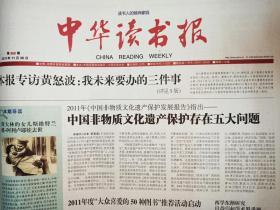 中华读书报,2011年11月30日。专访黄怒波。追忆恩师田德望。怀念金灿然。杨武能译事之花。严歌苓以家族史写作。弘光纪事:四镇.武人。胡士莹与《话本小说概论》。国际道德经论坛与《老子集成》