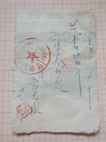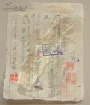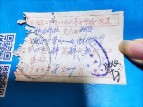 故纸堆1568 江宁县淳化合作社高桥服务处手写运盐发票 金额为旧币 写在老香烟包装纸背面,背面贴新中国成立初期江苏省南京市搬运公司定额搬运费收据2枚, 其中旧币1000元、2000元各1枚,1枚脱落