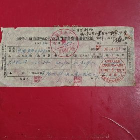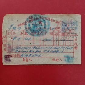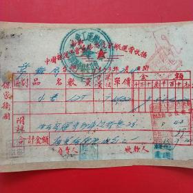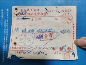 1953年7月28日,粮食(黄豆),中国搬运工会车站委员会搬运费收据,抗美援朝保家卫国票据,新郑县(河南省郑州市新郑市)粮食局。(生日票据,食堂饭店类票据,运输专题2)。(55-1)