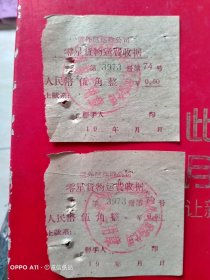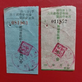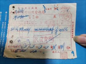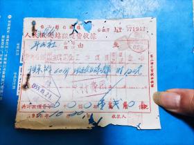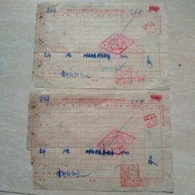 1953年6月11日,搬运费收据2张,新郑县(河南省郑州市新郑市)粮食局直属库,国营河北省运输公司沧县支公司搬运营业部收据。(生日票据,运输专题2类票据)。(49-3)