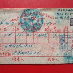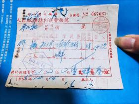 1953年7月18日,粮食(小麦),中国搬运工会车站委员会搬运费收据,抗美援朝保家卫国票据,新郑县(河南省郑州市新郑市)粮食局。(生日票据,食堂饭店类票据,运输专题2)。(55-6)