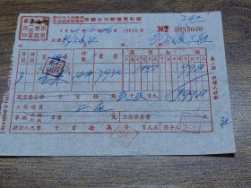 1953年7月28日,粮食(大米),中国搬运工会车站委员会搬运费收据,抗美援朝保家卫国票据,新郑县(河南省郑州市新郑市)粮食局。(生日票据,食堂饭店类票据,运输专题2)。(55-1)