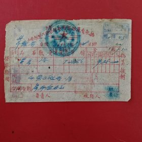 1953年7月18日,粮食(小麦),中国搬运工会车站委员会搬运费收据2,抗美援朝保家卫国票据,新郑县(河南省郑州市新郑市)粮食局。(生日票据,食堂饭店类票据,运输专题2)。(55-6)