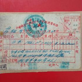 1953年7月18日,粮食(小麦),中国搬运工会车站委员会搬运费收据,抗美援朝保家卫国票据,新郑县(河南省郑州市新郑市)粮食局。(生日票据,食堂饭店类票据,运输专题2)。(54-9)