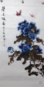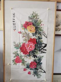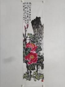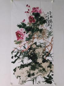保真书画,徐德润《富贵图》四尺整纸牡丹国画一幅137×69cm,软片。徐德润,1937年生,中国艺术研究院翰林画院院长,现代民族书画艺术家协会副主席,国家一级美术师,中国美协会员。