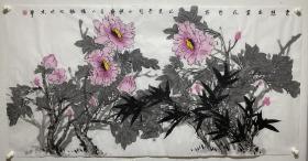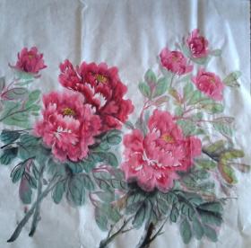 【保真】5.牡丹名家秦晖先生《天香国色》 纯手绘小四尺未装裱大写意国画牡丹花鸟画芯,一图一拍所见即所得,纯手绘保真销售,庆贺本店晋升三钻特价放漏只赚好评不赚钱!