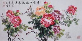 周金阊作品 张大千第三代 可合影 【大千画派第三代传人】 ——当代著名画家周金阊先生创作精品 《万紫千红总是春》 尺寸:137cmX70cm 八平尺 附带收藏证书 作者合影 四尺牡丹