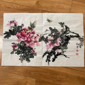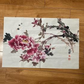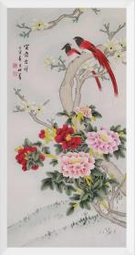 周金阊作品 张大千第三代 可合影【大千画派第三代传人】 ——当代著名画家周金阊先生创作精品 《国色天香》 尺寸:137cmX70cm 八平尺 附带收藏证书 作者合影 画集 合影视频,四尺牡丹