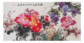 保真,李文昌,国家一级美术师,现为国家一级美术师、中国书画家协会理事,香港中国国画院艺术委员,景泓画院院长。四尺整张牡丹:大富贵,136*68,