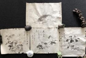 日本舶来品 国画作品 纸本软片 老字画 “鱼 花卉” 年代物 款:竹香散人