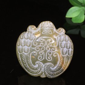 收藏古玩玉器高古玉古董做旧玉璧玉石挂件老岫玉把件吊坠牌子古兽