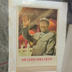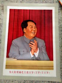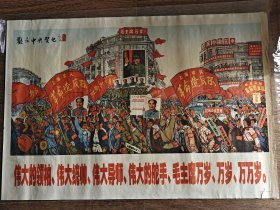 **精品宣传画——我们最最敬爱的领袖毛主席万岁(文艺兵团陕西地区美术纵队红色画报编辑部出版,美纵、美协**创作、西安第一印刷厂临委会印刷,2开宣传画,52cmX76cm,品见描述)
