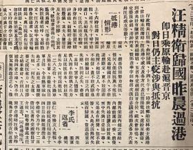 广州民国日报 (中华民国22年3月15日) 1*政务会第16次会议 泒黄萝年继任梧州关监督泒罗其鍾任西南分院推事 2*汪精卫归国昨晨过港 即日乘原轮赴沪晋京对日仍主涉与抵抗 3*蒋张无抗日决心致热河全线崩溃 4*纸币潮完全寝息 5*日有征服我全国计划 6*功罪是非之标准惟在真能抗战与否而已