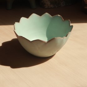 蓝绿彩笔洗/水仙盆,题词漏字瓷器。景德镇制篆书款。题词:风景这边独,江山如此多。应该是漏字了。口沿有一点点窑裂痕如图。口径18.3厘米,高5.6厘米。都是实拍图,所见即所得。