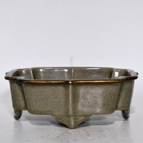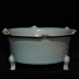 宋代瓷器精品老货收藏 汝窑花口三足炉