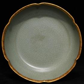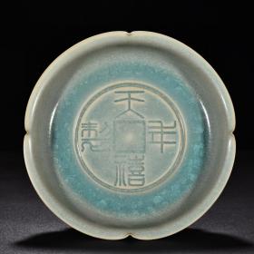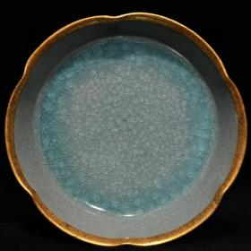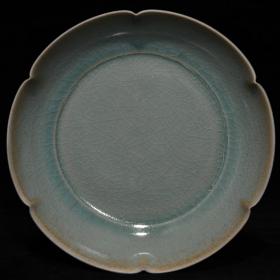 宋代瓷器精品老货收藏 宋汝窑天青釉冰裂纹葵口盘天禧年制