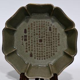 宋代瓷器精品老货收藏 汝窑包口刻诗葵口洗1