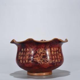 宋代瓷器精品老货收藏 宋钧窑窑变刻铭文花口洗