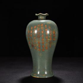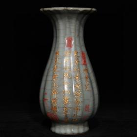 宋代瓷器精品老货收藏 官瓷刻诗花口瓶