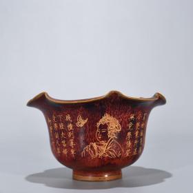 宋代瓷器精品老货收藏 宋定窑紫金釉山水纹碗镶嵌铜口