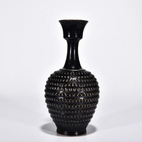 宋代瓷器精品老货收藏 宋黑定跳刀纹翻口瓶(奉华款)