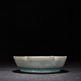 宋代瓷器精品老货收藏 宋汝窑天青釉冰裂纹葵口洗1