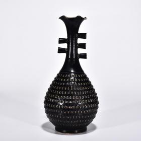 宋代瓷器精品老货收藏 宋黑定跳刀纹花口玉壶春瓶(朝真款)