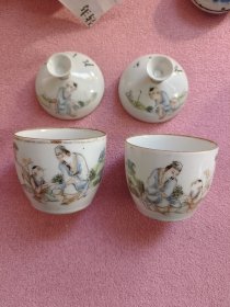 民国名家 吴少峰 瓷器 糖缸 一对 一个盖有点毛口,一只底有窑缝 尺寸口直径8.2总高12cm左右 保真包老 品相如图 两只略微有点大小 951号