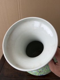 粉彩瓷器苹果绿地釉花卉双耳盘口赏瓶 晚清藏品 红釉双耳 如意纹 花卉 满功 开门藏品 包真到代 釉色肥厚 浆体环绕 满功 高度350mm 直径228mm 重量2740g 五斤半 完好