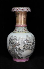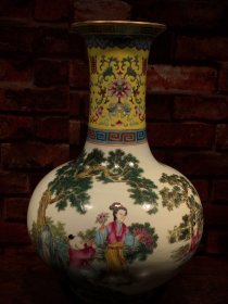 珐琅彩瓷器古人物故事梅瓶 大瓶 众仙人物故事 梅瓶 侈口圈足 釉色肥厚 浆体环绕 满功 高度308mm 直径230mm 重量2460g 四斤九两 完好