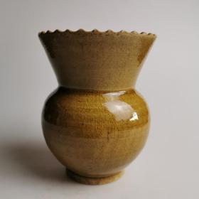 珐琅彩瓷器黄地釉花卉童趣胆瓶 大胆瓶 侈口 回旋纹 如意纹 黄地釉 釉色肥厚 浆体环绕 童趣人物 细纹开片 饰松石绿 高度335mm 直径230mm 重量2870g 五斤七两