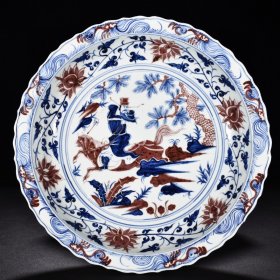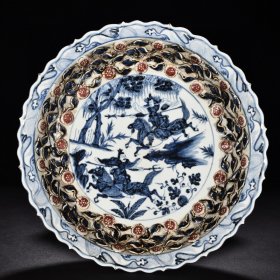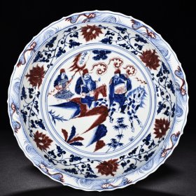 瓷器 元青花釉里红白浒孤窑唐太宗人物纹菱口折沿盘 高7厘米 宽44.7厘米