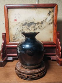清代黑釉带铁锈斑盘口瓶文玩收藏瓷器包老到代老瓷器