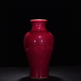 瓷器 清雍正宝石红釉冰裂翻口瓶 高37厘米 宽20厘米
