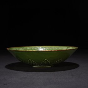 瓷器 宋定窑绿釉鹭鸶花鸟纹碗 镶嵌铜口 6*23厘米